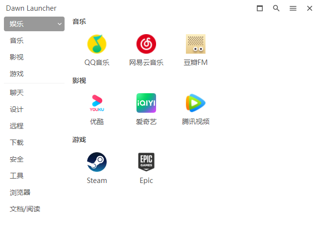 dawnlauncher是一款windows快捷启动工具,支持添加文件,文件夹,网址,系统等快速启动项目,能够自定义添加分类,子分类,支持开机自启,明暗主题切换,数据备份与恢复。