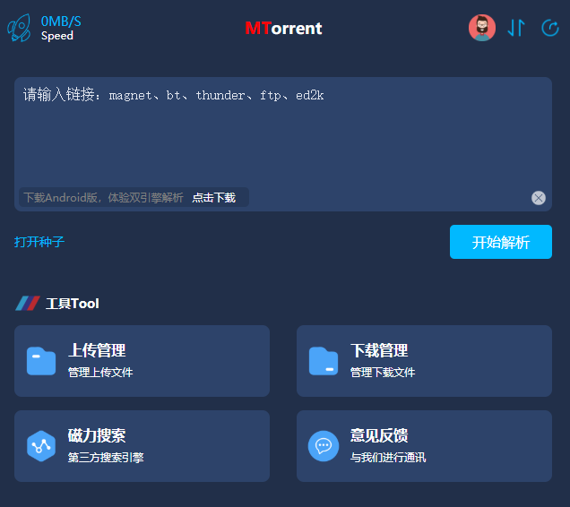 mt下载器是一款磁力下载app,内置磁力解析、在线预览、下载功用、磁力搜索为一体的多功用软件。